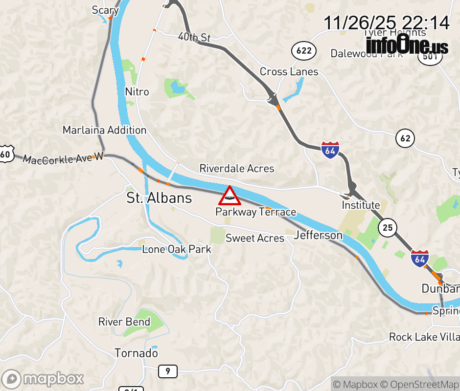 Canceled 11/26/25 11:32 PM Location: US-60 at MM 5.0, WV Accident.