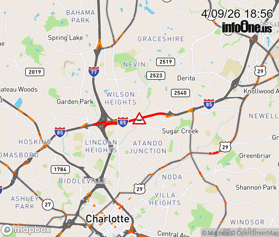 The left lane is closed past Exit 39 (Statesville Ave) Updated: Thu 4/9/26 6:56 PM EDT ![]() Updated: Thu 4/9/26 6:56 PM EDT |