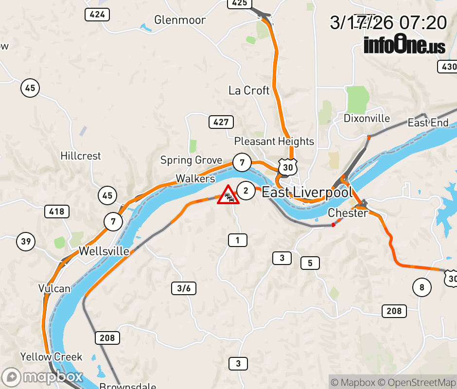 Road Closure on WV-2 (Washington St) in Newell. Comments:Due To Winter Road Conditions. ![]() |