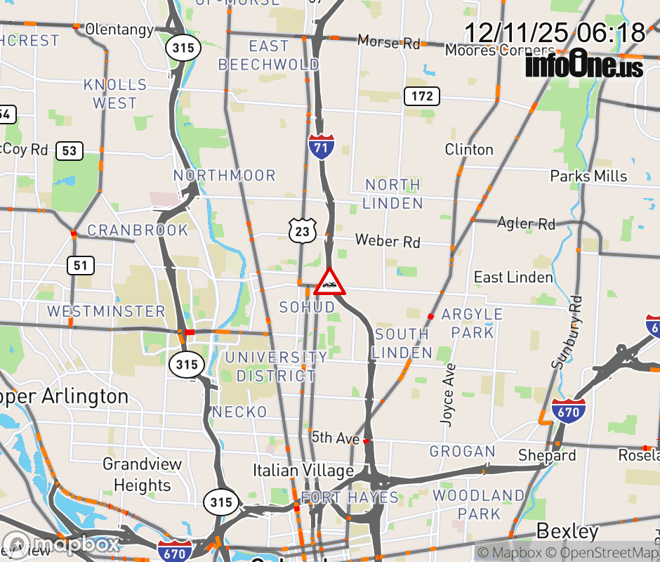 The right shoulder is blocked on I-71 South at Hudson St, due to a disabled vehicle. ![]() |