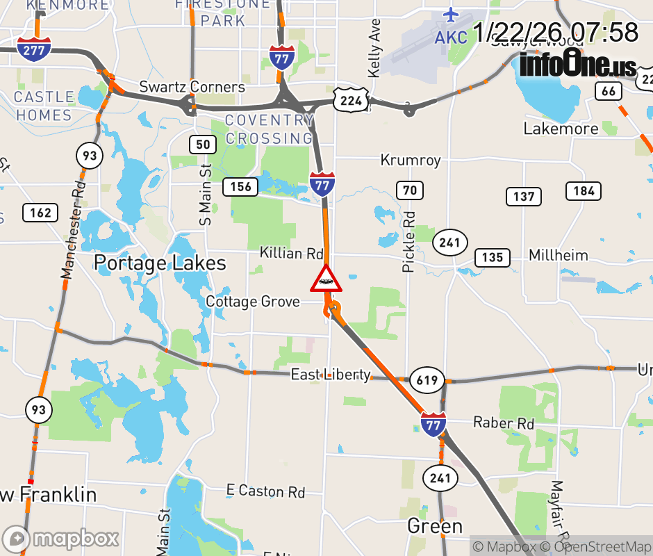 The left lane is blocked on I-77 North beyond Arlington Rd, due to a crash. Updated: Thu 1/22/26 7:58 AM EST ![]() Updated: Thu 1/22/26 7:58 AM EST |