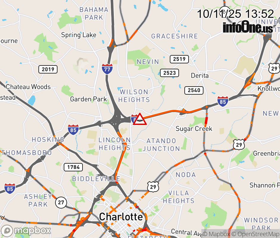 The right shoulder is closed at Exit 39 (Statesville Ave). Updated: Sat 10/11/25 1:52 PM EDT ![]() Updated: Sat 10/11/25 1:52 PM EDT |