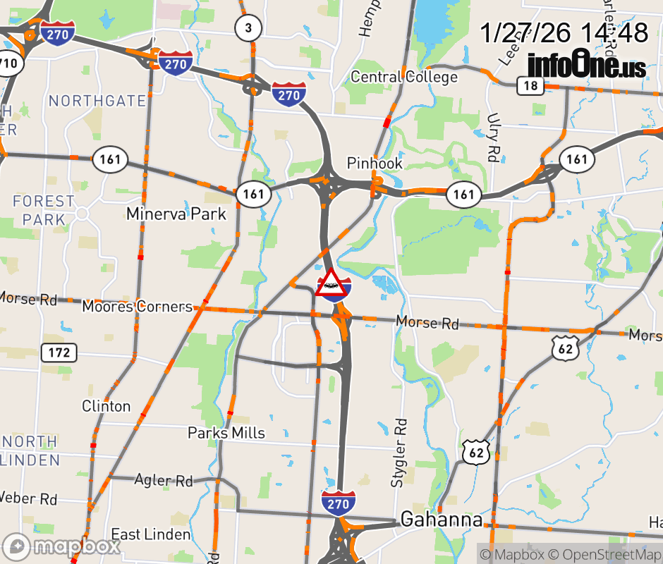 The right lane is blocked on I-270 South beyond SR-161/Dublin Granville Rd, due to a crash. ![]() |