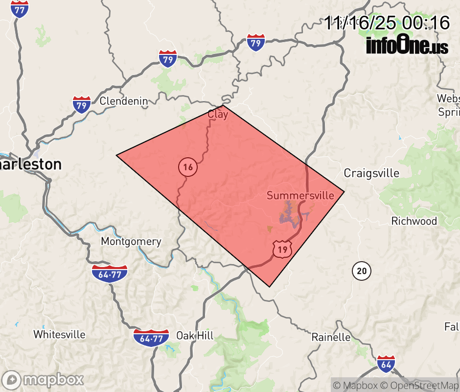 Canceled 11/16/25 12:45 AM Special Weather Statement issued November 16 at 12:15AM EST by NWS Charleston WV At 1215 AM EST, Doppler radar was tracking a strong thunderstorm near Glen, or 7 miles southwest of Clay, moving southeast at 40 mph. HAZARD...Wind gusts up to 50 mph. SOURCE...Radar indicated. IMPACT...Gusty winds could knock down tree limbs and blow around unsecured objects. Locations impacted include... Summersville, Clay, Glen, Bentree, Kesslers Cross Lanes, Bickmore, Canvas, Drennan, Swiss, Indore, and Mount Nebo. This includes Route 19 between mile markers 26 and 46. ![]() |