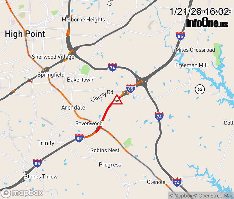 Canceled 1/21/26 4:44 PM Location: I-85N at MM 113, NC Vehicle Crash.