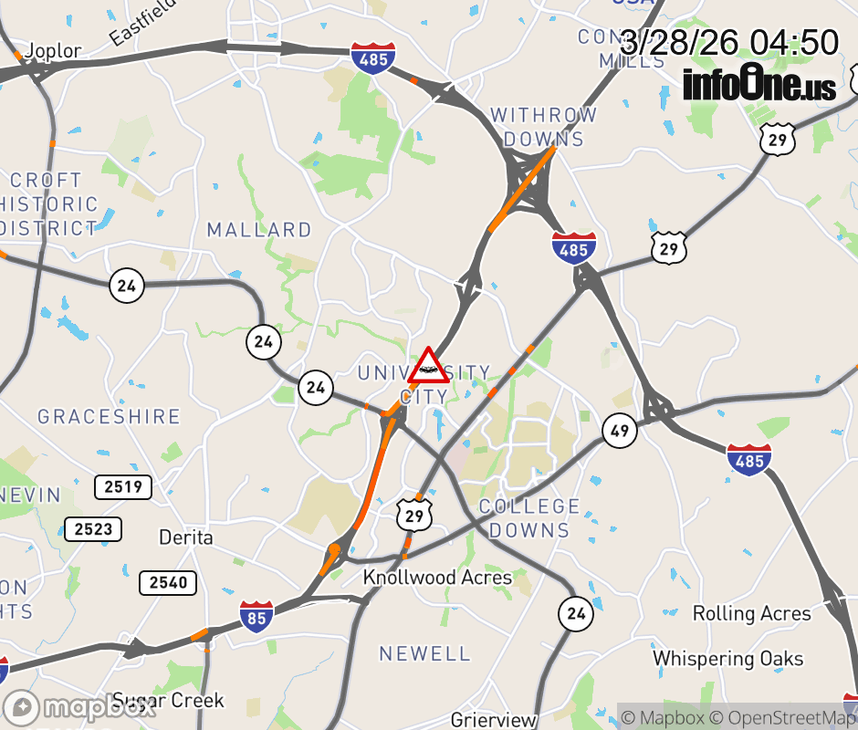 The road is closed at Exit 45 (NC 24).. Updated: Sat 3/28/26 4:48 AM EDT ![]() Updated: Sat 3/28/26 4:50 AM EDT |