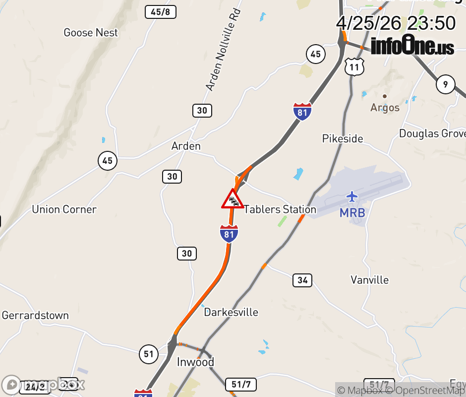Vehicle Fire on I-81S at Mile Marker 8.0. The southbound road is closed. Updated: Sat 4/25/26 11:50 PM EDT ![]() Updated: Sat 4/25/26 11:50 PM EDT |