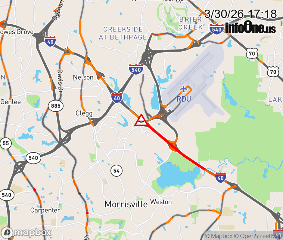 Both shoulders are closed at Exit 284 (Airport Blvd). Updated: Mon 3/30/26 5:18 PM EDT ![]() Updated: Mon 3/30/26 5:18 PM EDT |