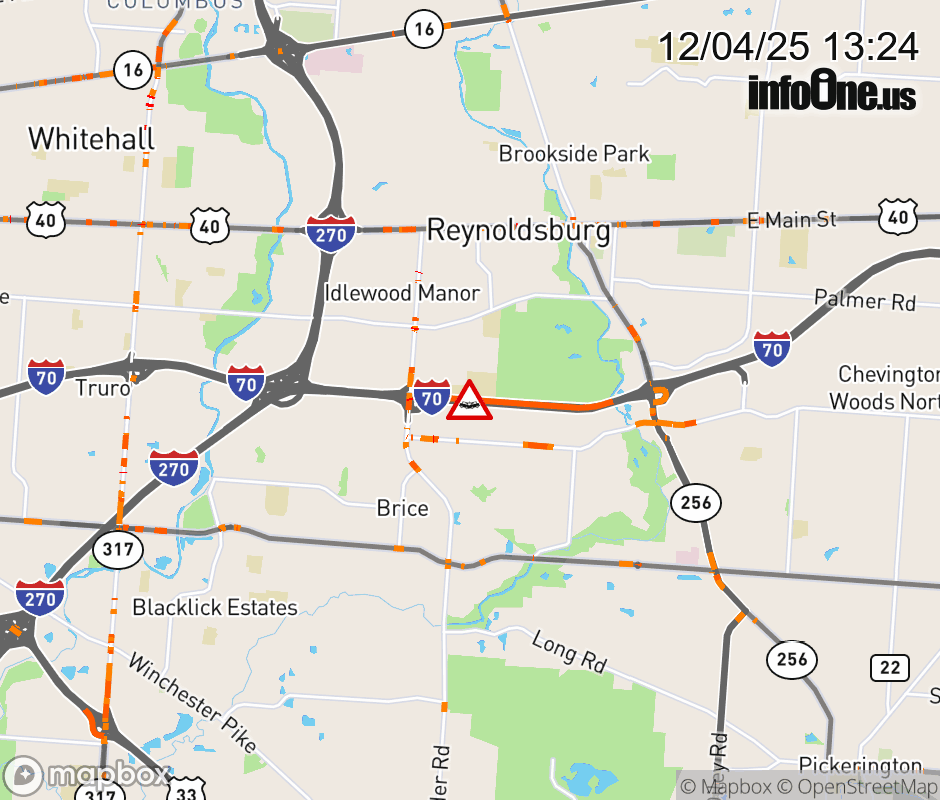 The left shoulder is blocked on I-70 West beyond SR-256, due to a crash. Updated: Thu 12/4/25 1:24 PM EST ![]() Updated: Thu 12/4/25 1:24 PM EST |