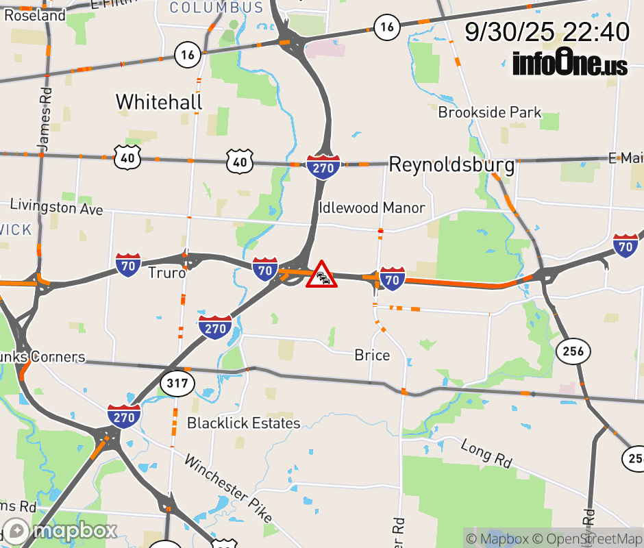 Expect lane closures on I-70 West at I-70 West C-D Road, due to repairs/maintenance. ![]() |