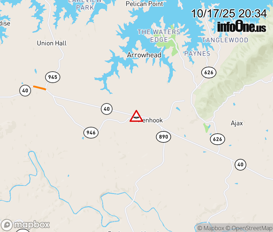 On Rt. 946 East in the County of Franklin, in the vicinity of Old Franklin Tpke; VA-40E/W;MID/ NOVELTY RD, motorists can expect delays due to a vehicle crash. Lane closures exist. ![]() |