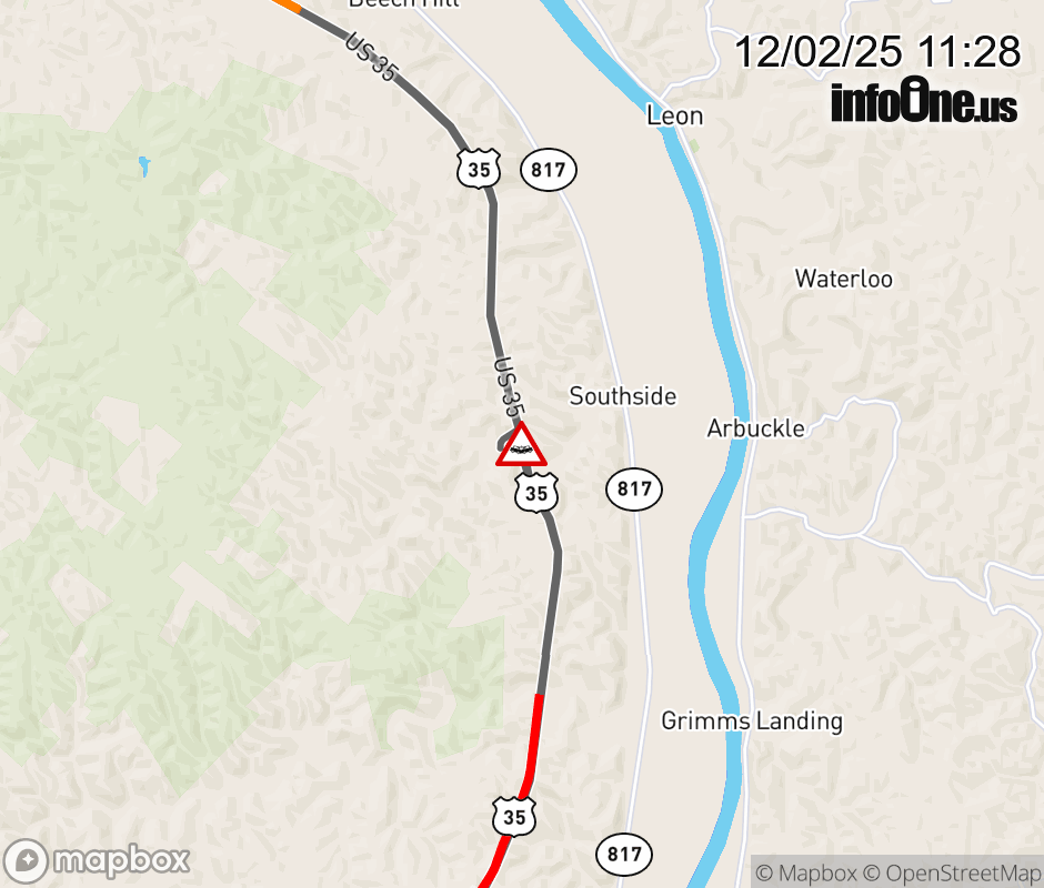 Vehicle Crash on US-35 & CR-29 (Sixteen Mile Road). The northbound road is closed. Comments:Detour: Use WV-817. Updated: Tue 12/2/25 11:28 AM EST ![]() Updated: Tue 12/2/25 11:28 AM EST |
