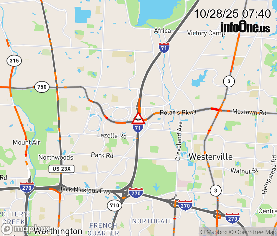 The right lane is blocked on I-71 South beyond Gemini Place To Polaris Pkwy, due to a crash. ![]() |