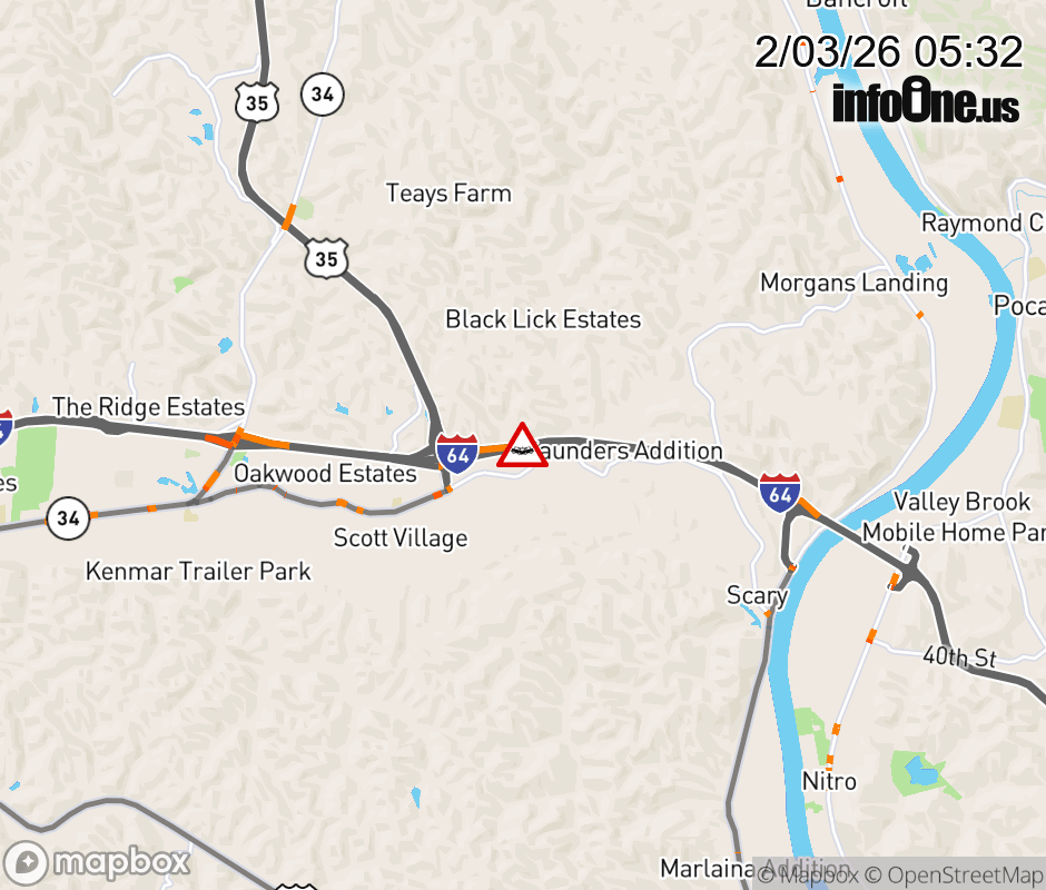 Location: I-64 at MM 41.0, WV Accident.