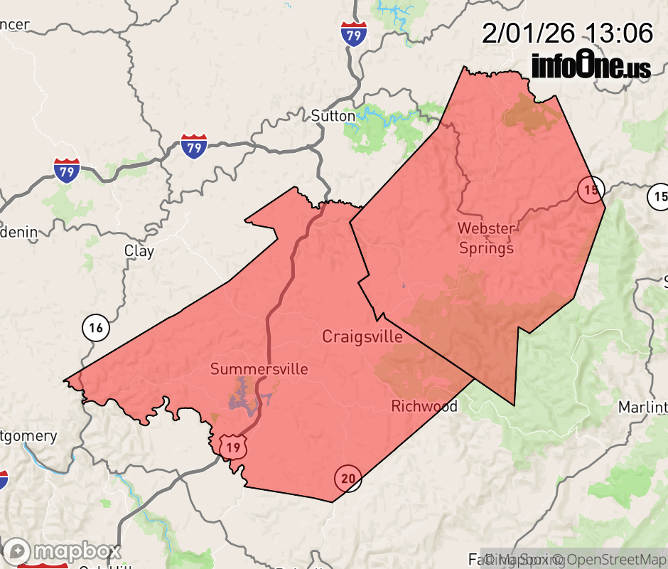 Canceled 2/1/26 9:06 PM Cold Weather Advisory issued February 1 at 1:05PM EST until February 2 at 11:00AM EST by NWS Charleston WV * WHAT... Very cold wind chills as low as 13 below. * WHERE... Southeast Webster and Southeast Nicholas Counties. * WHEN... Until 11 AM EST Monday. * IMPACTS... The cold wind chills as low as 15 below zero could result in hypothermia if precautions are not taken. Frostbite will occur if unprotected skin is exposed to these temperatures. ![]() |