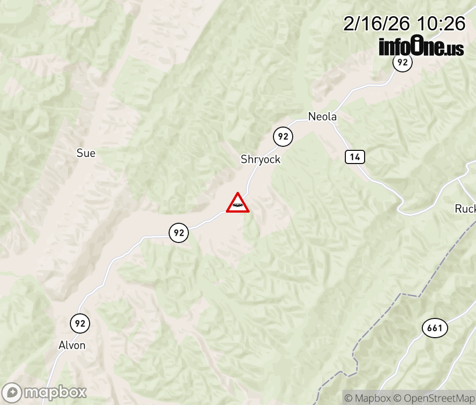 Vehicle Crash on WV-92 (13000 BLK of Pocahontas Trl) in Neola.
