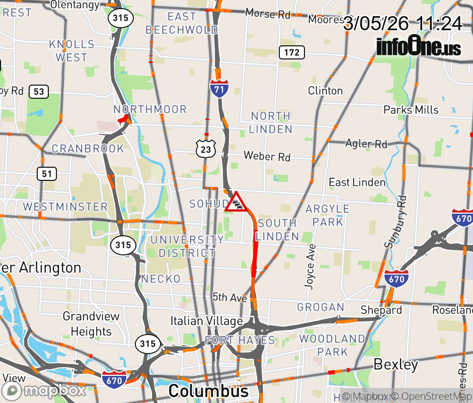 The left lane is blocked on I-71 North at Hudson St, due to repairs/maintenance. ![]() |