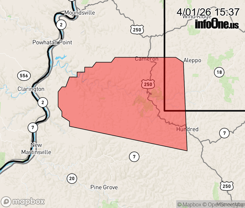 Canceled 4/1/26 3:53 PM Severe Thunderstorm Warning issued April 1 at 3:35PM EDT until April 1 at 4:00PM EDT by NWS Pittsburgh PA At 335 PM EDT, a severe thunderstorm was located 8 miles southwest of Cameron, or 11 miles northeast of New Martinsville, moving east at 25 mph. HAZARD...60 mph wind gusts and quarter size hail. SOURCE...Radar indicated. IMPACT...Hail damage to vehicles is expected. Expect wind damage to roofs, siding, and trees. Locations impacted include... Cameron, Lynn Camp and Littleton. ![]() |