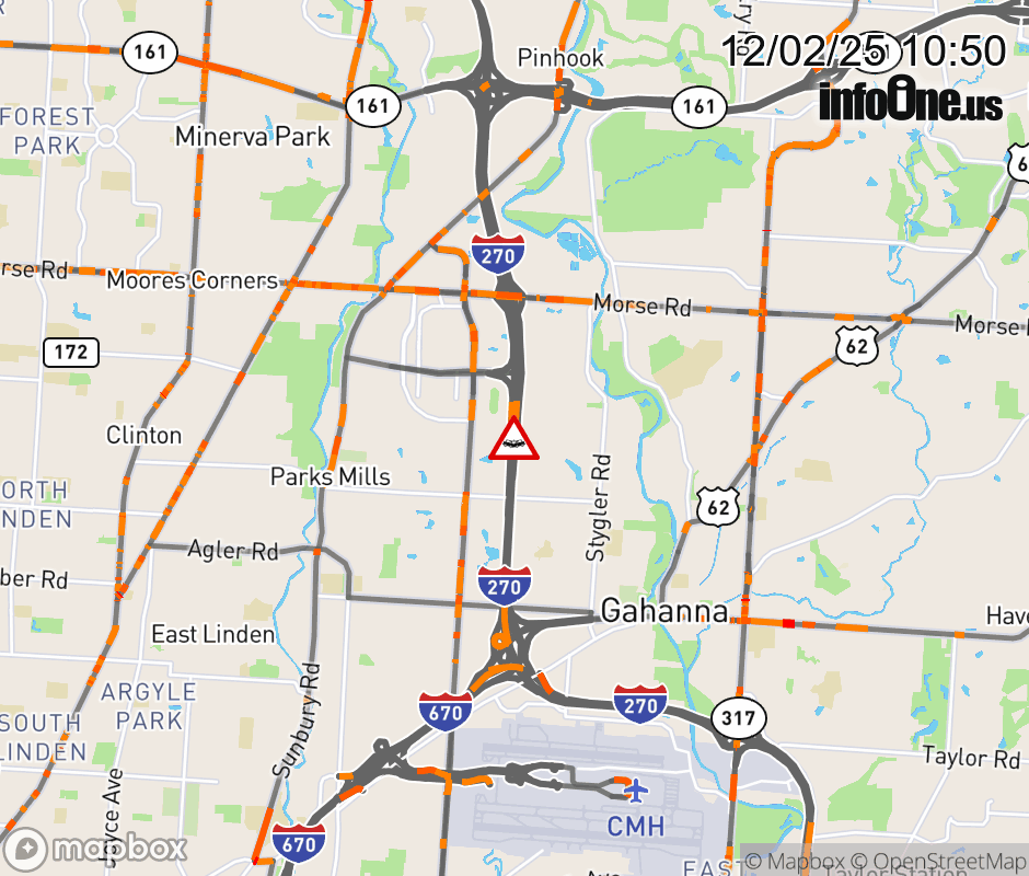 The left shoulder is blocked on I-270 North beyond US-62 East/Johnstown Rd, due to a crash. ![]() |