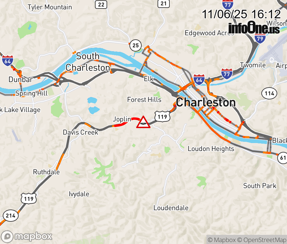 Vehicle Crash on US-119 (Corridor G North) & Lucado Rd in Charleston. The northbound road is closed. Updated: Thu 11/6/25 4:12 PM EST ![]() Updated: Thu 11/6/25 4:12 PM EST |