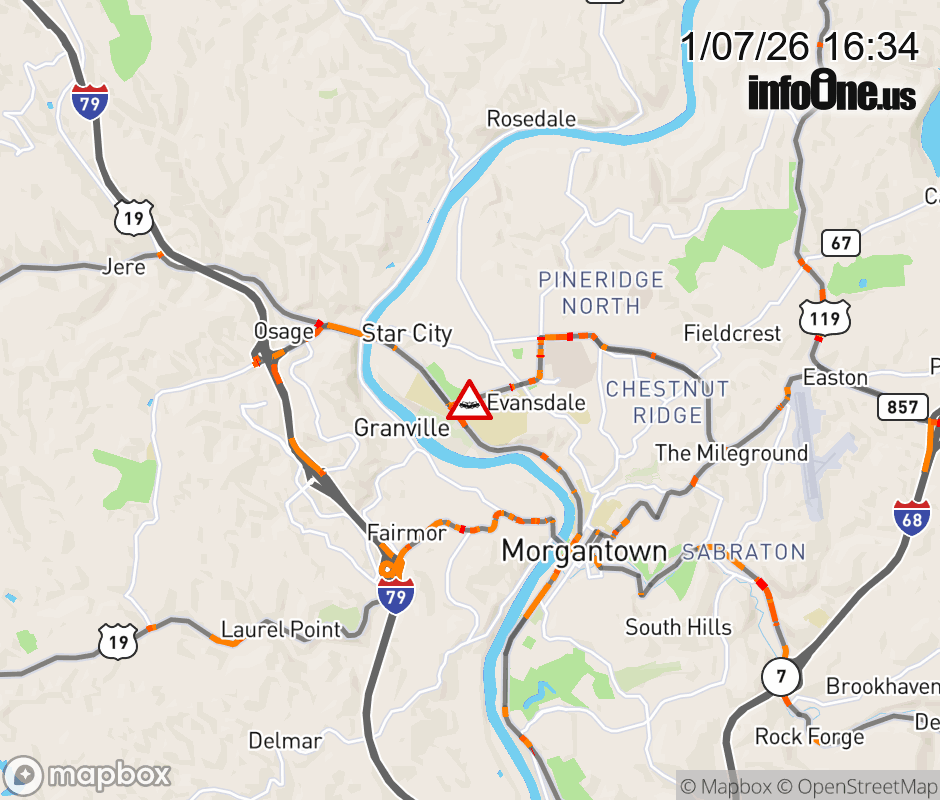 Vehicle Crash on WV-705 (Patteson Drive at Laurel Street). The westbound right lane is closed. ![]() |