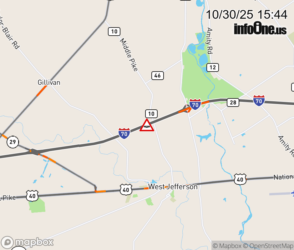 The right lane is blocked on I-70 East beyond SR-29/West Jefferson, due to a crash. ![]() |