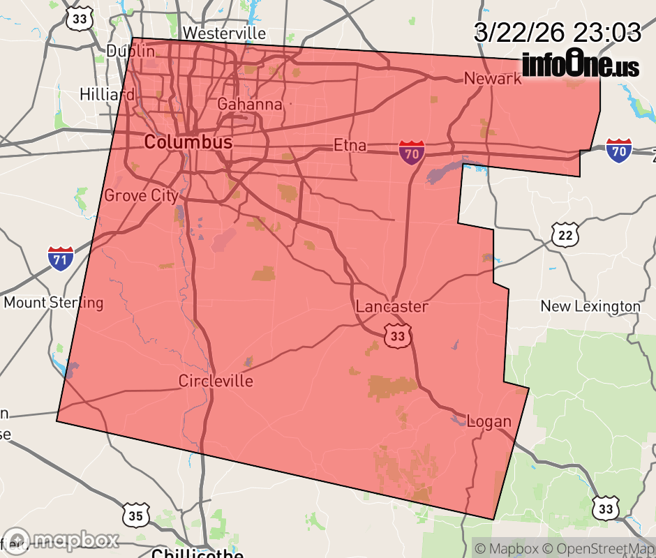 Canceled 3/22/26 11:25 PM Severe Thunderstorm Warning issued March 22 at 11:02PM EDT until March 22 at 11:45PM EDT by NWS Wilmington OH SVRILN The National Weather Service in Wilmington has issued a * Severe Thunderstorm Warning for... Franklin County in central Ohio... Fairfield County in central Ohio... Hocking County in central Ohio... Pickaway County in central Ohio... Southern Licking County in central Ohio... Northeastern Ross County in south central Ohio... * Until 1145 PM EDT. * At 1101 PM EDT, a severe thunderstorm was located near Grove City, moving east at 55 mph. HAZARD...60 mph wind gusts and quarter size hail. SOURCE...Radar indicated. IMPACT...Minor hail damage to vehicles is possible. Expect wind damage to trees and power lines. * Locations impacted include... Columbus, Newark, Dublin, Lancaster, Westerville, Reynoldsburg, Grove City, Upper Arlington, Gahanna, Hilliard, Pickerington, Worthington, Circleville, Bexley, Heath, Logan, Granville, Pataskala, Canal Winchester, and Groveport. This includes the following Interstates... I-70 in Ohio between mile markers 92 and 142. I-71 in Ohio between mile markers 92 and 119. ![]() |