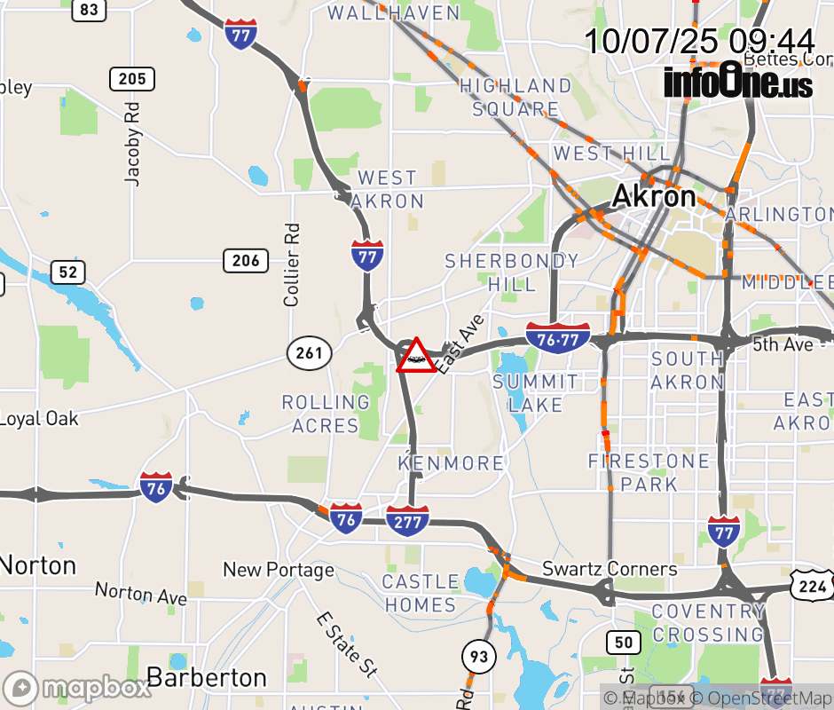 The right shoulder is blocked on I-76 East at I-77/I-76, due to a crash.