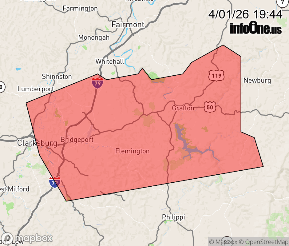 Canceled 4/1/26 8:30 PM Special Weather Statement issued April 1 at 7:42PM EDT by NWS Charleston WV At 742 PM EDT, Doppler radar was tracking a strong thunderstorm over Bridgeport, or near Clarksburg, moving east at 35 mph. HAZARD...Wind gusts up to 50 mph and pea size hail. SOURCE...Radar indicated. IMPACT...Gusty winds could knock down tree limbs and blow around unsecured objects. Minor hail damage to vegetation is possible. Locations impacted include... Clarksburg, Grafton, Bridgeport, Stonewood, Nutter Fort, Anmoore, Flemington, Valley Falls, Rosemont, Knottsville, Meadland, Tygart Lake State Park, Thornton, McGee, Galloway, Meadowbrook, and Despard. This includes the following highways... Interstate 79 between mile markers 115 and 129. Route 50 in West Virginia between mile markers 79 and 82. ![]() |