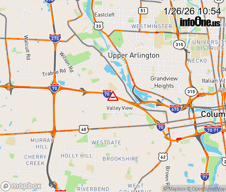 The 2 right lanes are blocked on I-70 East beyond Wilson Rd, due to a crash. Updated: Mon 1/26/26 10:54 AM EST ![]() Updated: Mon 1/26/26 10:54 AM EST |