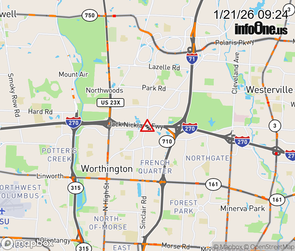 Expect lane closures on I-270 West beyond I-71, due to debris on roadway. ![]() |
