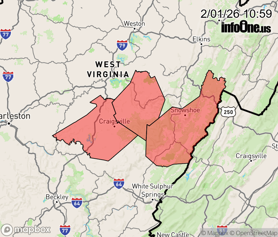 Canceled 2/1/26 1:00 PM Extreme Cold Warning issued February 1 at 10:58AM EST until February 1 at 1:00PM EST by NWS Charleston WV * WHAT... Dangerously cold wind chills as low as 15 below. * WHERE... Southeast Pocahontas, Southeast Webster, and Southeast Nicholas Counties. * WHEN... Until 1 PM EST this afternoon. * IMPACTS... The dangerously cold wind chills as low as 15 below zero could cause frostbite on exposed skin in as little as 30 minutes. Frostbite and hypothermia will occur if unprotected skin is exposed to these temperatures. ![]() |