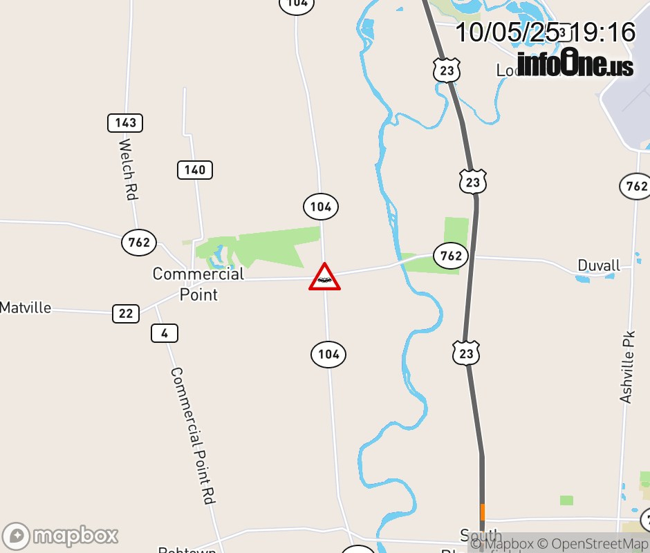 SR-762 CLOSED in BOTH DIRECTIONS from SR-104 to 0.8 miles beyond SR-104 (MM: 9.2), due to crash. Use alternate route. Updated: Sun 10/5/25 7:16 PM EDT ![]() |