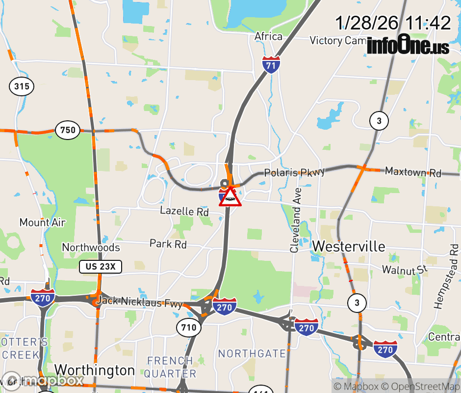 Expect lane closures on Ramp I-71 North to SR-750, due to a crash. ![]() |