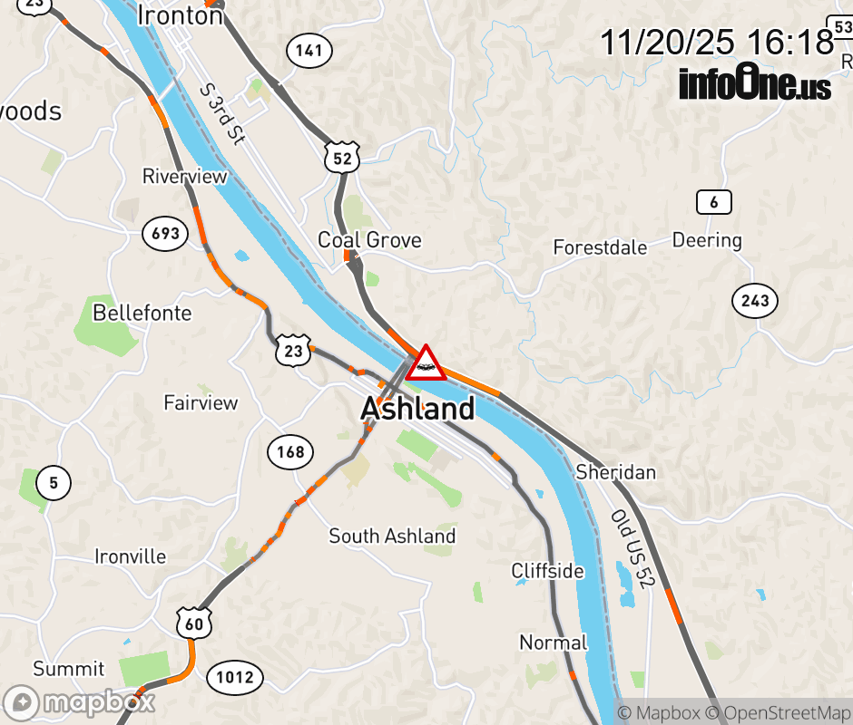 Expect lane closures on US-52 West at Ben Williamson Memorial Bridge, due to a crash. Updated: Thu 11/20/25 4:18 PM EST ![]() Updated: Thu 11/20/25 4:18 PM EST |