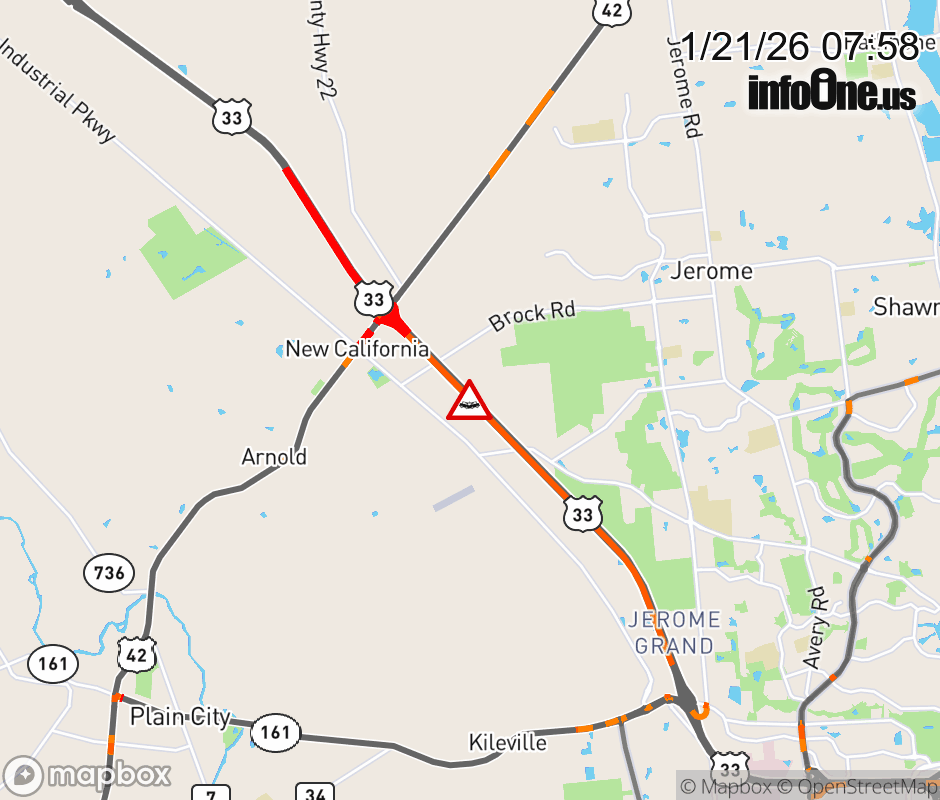 Expect lane closures on US-33 East beyond US-42, due to a crash. ![]() |