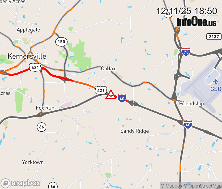 The right lane is closed at Exit 206(US 421). Updated: Thu 12/11/25 6:50 PM EST ![]() Updated: Thu 12/11/25 6:50 PM EST |