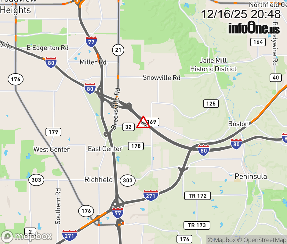 Expect lane closures on I-80 East (Ohio Turnpike) beyond I-77, due to a fire. ![]() |