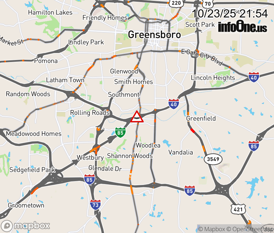 The right shoulder is closed near Exit 220 (Randleman Rd). ![]() |