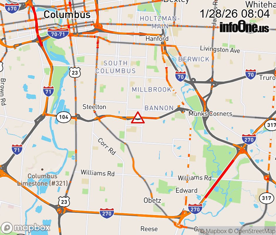 Expect lane closures on SR-104 West at Lockbourne Rd, due to a crash. ![]() |