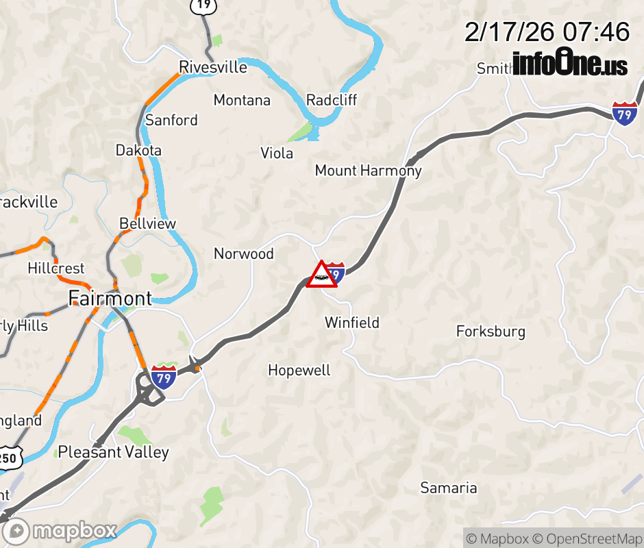 Vehicle Crash on CR-33 (Bunner Ridge Rd) & I-79 South Ramps (MM 139) in Fairmont. ![]() |