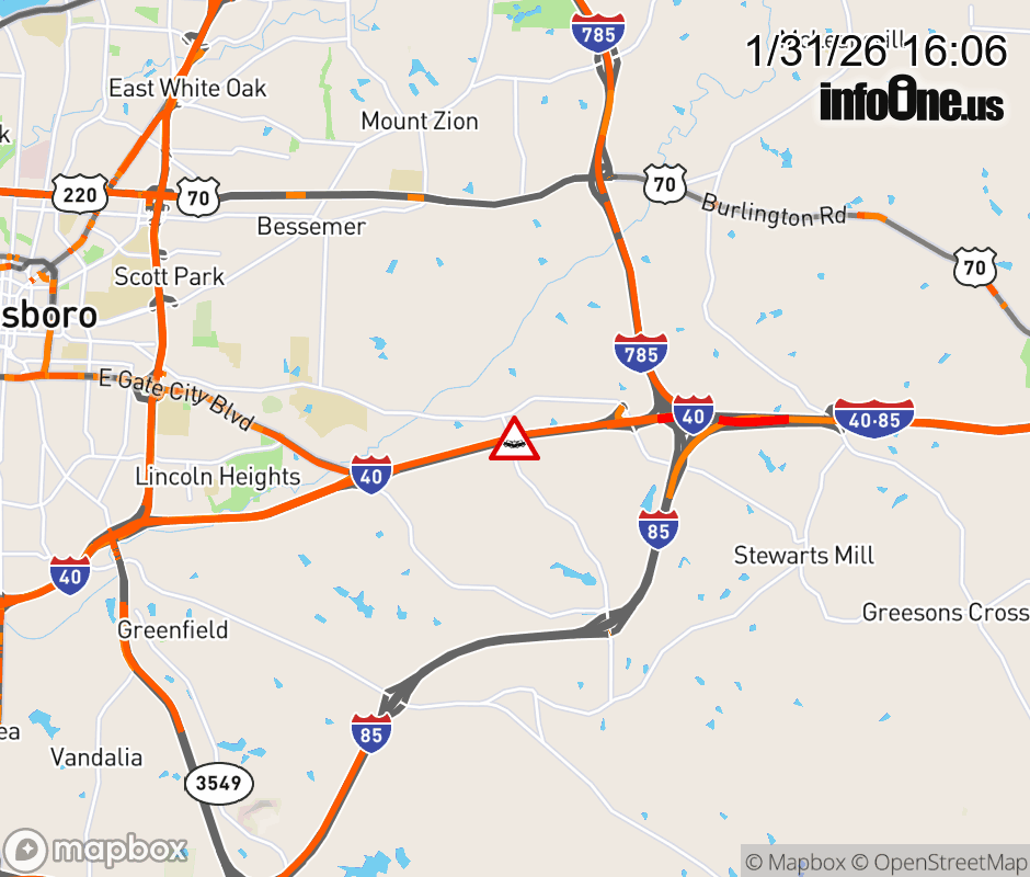 The two left lanes are closed 1 mile past Exit 224 (E Gate City Blvd). Updated: Sat 1/31/26 4:06 PM EST ![]() Updated: Sat 1/31/26 4:06 PM EST |