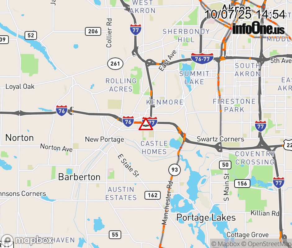 Expect lane closures on East I-277/US-224E to I76E-1, due to a crash. Updated: Tue 10/7/25 2:54 PM EDT ![]() Updated: Tue 10/7/25 2:54 PM EDT |