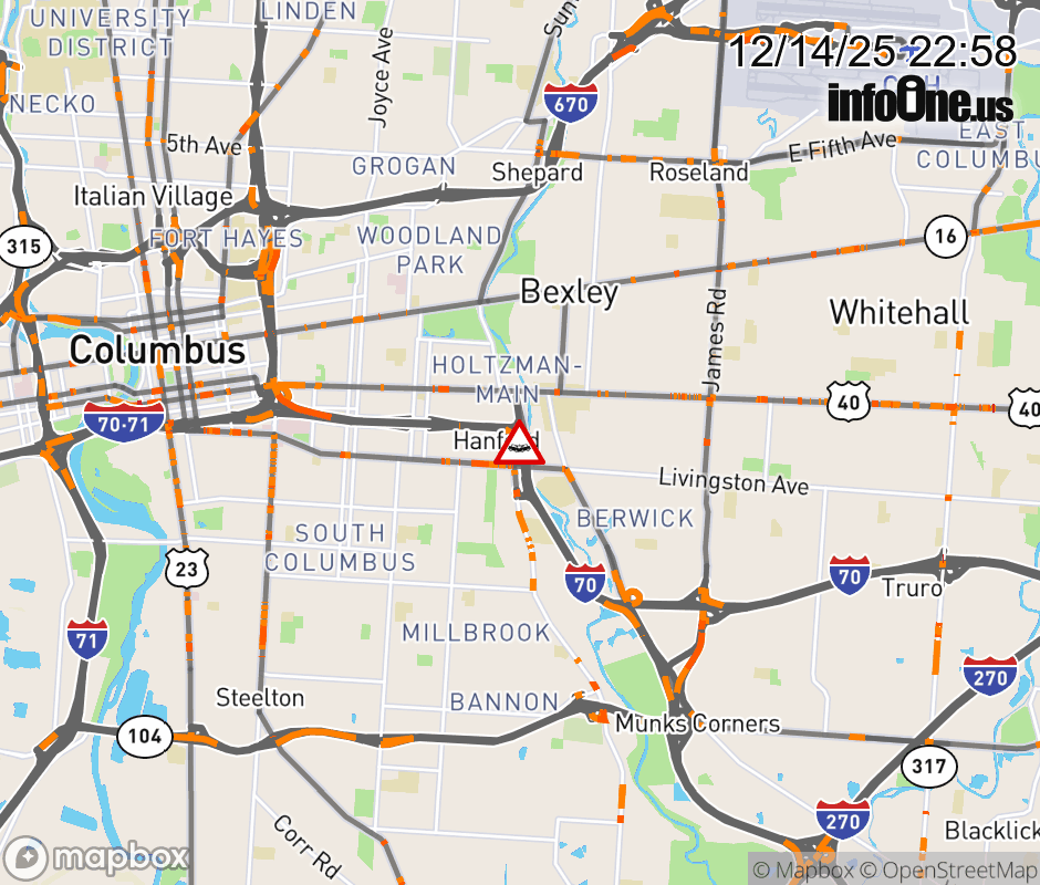 The 2 left lanes are blocked on I-70 West beyond US-33/Livingston Ave, due to a crash. ![]() |