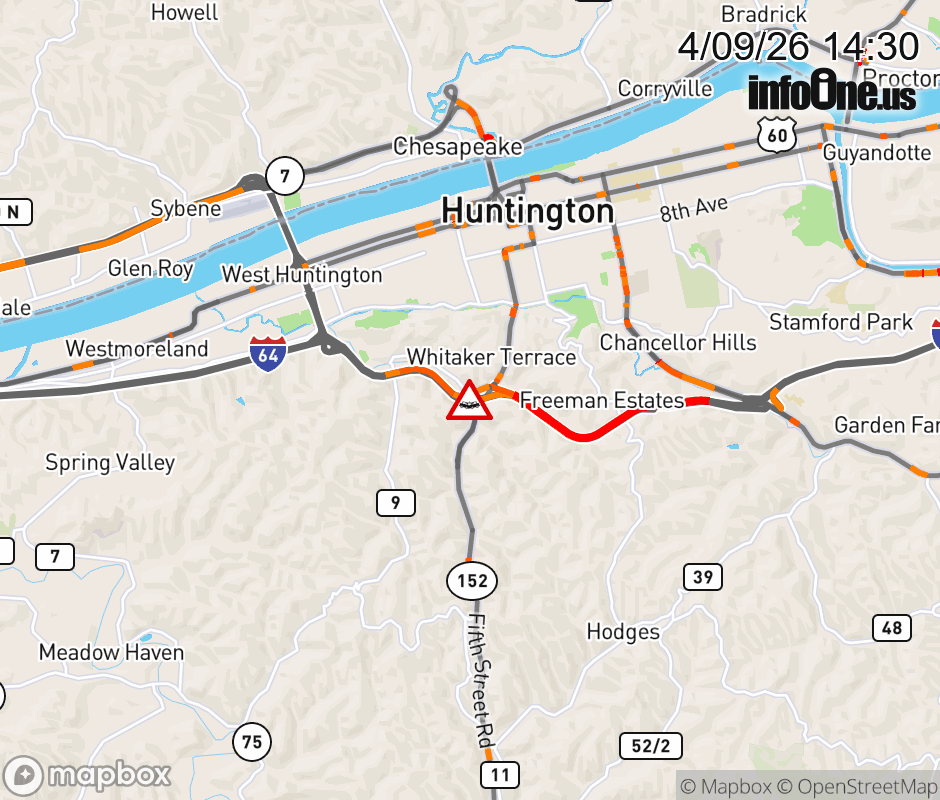 Vehicle Crash on I-64W at Mile Marker 8.0. The westbound right lane is closed. Updated: Thu 4/9/26 2:30 PM EDT ![]() Updated: Thu 4/9/26 2:30 PM EDT |