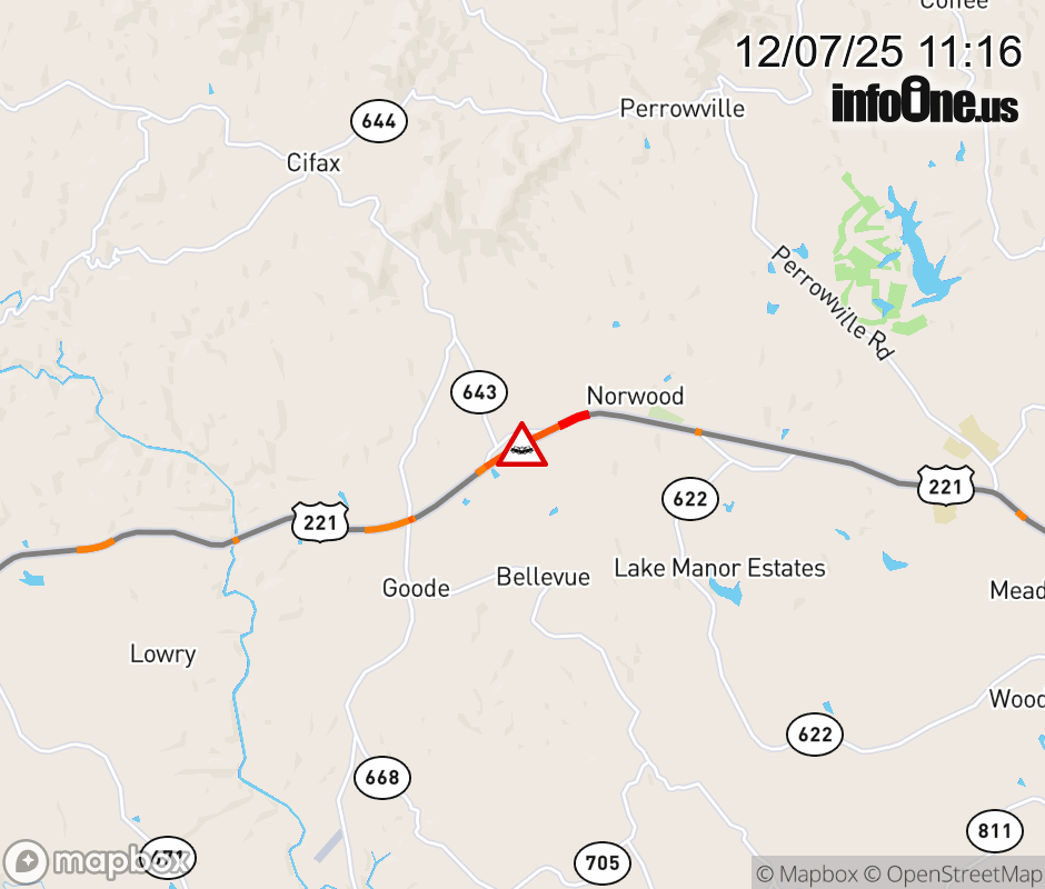 On US-221 in the County of Bedford, in the vicinity of Brookhill Rd; Rt. 841E/W (Bedford County), motorists can expect delays due to a vehicle crash. All north lanes are closed. All south lanes are closed. Updated: Sun 12/7/25 11:16 AM EST ![]() Updated: Sun 12/7/25 11:16 AM EST |