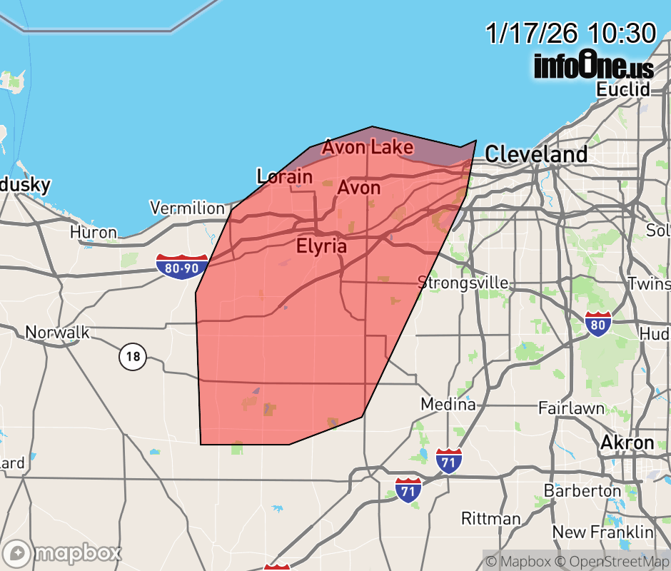 Canceled 1/17/26 11:00 AM Snow Squall Warning issued January 17 at 10:29AM EST until January 17 at 11:00AM EST by NWS Cleveland OH The National Weather Service in Cleveland has issued a * Snow Squall Warning for... West central Cuyahoga County in northeastern Ohio... Northwestern Medina County in northeastern Ohio... Lorain County in north central Ohio... * Until 1100 AM EST. * At 1027 AM EST, a dangerous snow squall was located along a line extending from near Avon Lake to 6 miles southwest of Elyria to near New London, moving northeast at 30 mph. HAZARD...Intense bursts of heavy snow. Gusty winds leading to blowing snow and visibility rapidly falling to less than one-quarter mile. Wind gusts up to 35 mph. SOURCE...Radar and webcams. IMPACT...Travel will become difficult and potentially dangerous within minutes. This will affect portions of I-90, I-80, I-480, and State Route 2 in Lorain and western Cuyahoga County. Locations impacted include... Cleveland, Lorain, Elyria, Vermilion, Lakewood, Westlake, North Ridgeville, Avon Lake, Amherst, Grafton, Wellington, North Olmsted, Avon, Rocky River, Brook Park, Berea, Fairview Park, Bay Village, Sheffield Lake, and Olmsted Falls. ![]() |