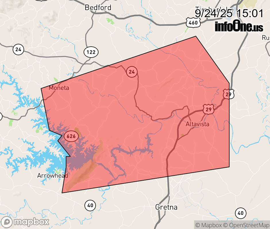 Canceled 9/24/25 3:30 PM Special Weather Statement issued September 24 at 3:00PM EDT by NWS Blacksburg VA At 259 PM EDT, Doppler radar was tracking a cluster of strong thunderstorms near Smith Mountain Lake State Park, or near Huddleston, moving east at 25 mph. HAZARD...Wind gusts up to 40 mph and pea size hail. SOURCE...Radar indicated. IMPACT...Gusty winds could knock down tree limbs and blow around unsecured objects. Locations impacted include... Altavista... Hurt... Moneta... Huddleston... Evington... Leesville... and Smith Mountain Lake State Park. ![]() |