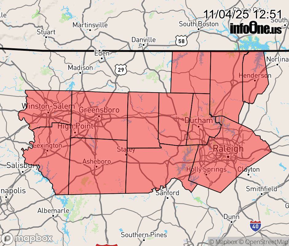 Canceled 11/5/25 4:00 AM Special Weather Statement issued November 4 at 12:49PM EST by NWS Raleigh NC Although recent rains have led to some increased soil moisture, abnormally dry conditions are still present over portions of the Piedmont. The combination of low relative humidity dropping into the 30 to 35 percent range with gusty southwest winds of 20 to 30 mph, an Increased Fire Danger statement has been issued for the Piedmont. This is in effect for Wednesday from 11 am to 6 pm. These weather conditions will result in elevated fire potential and a threat of adverse fire behavior. Please consult your local burn permitting authorities as to whether burning is allowed for Wednesday. If you must burn, use extreme caution, as fires can spread rapidly under these conditions. ![]() |