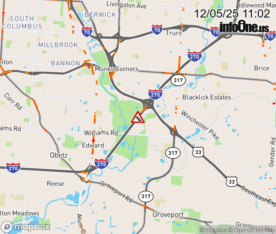 The left lane is blocked on I-270 South beyond US-33 East, due to repairs/maintenance. ![]() |